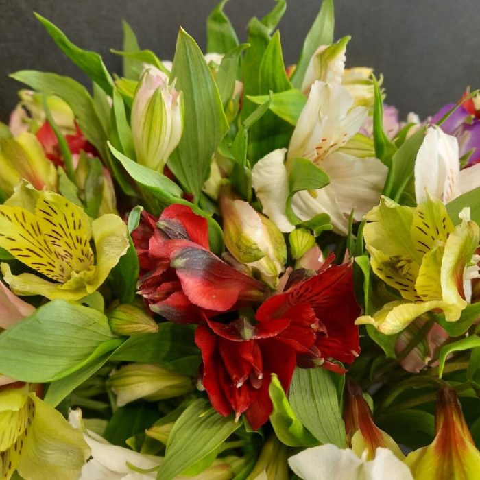 Лента атласная – 2 шт.альстромерия микс – 27 шт.