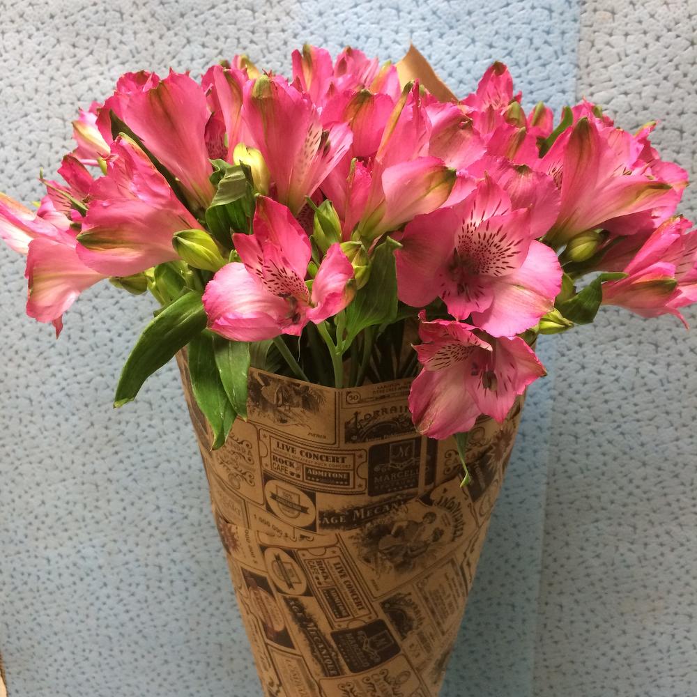 Альстромерия – 9 шт.Рускус сочи – 5 шт.Упаковка – 1 шт.