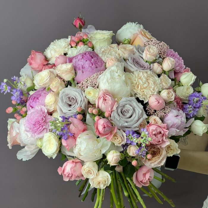 Розы9,пионы7,маттиола7,озатамус5 ,кустовая Роза 7,гвоздика 8