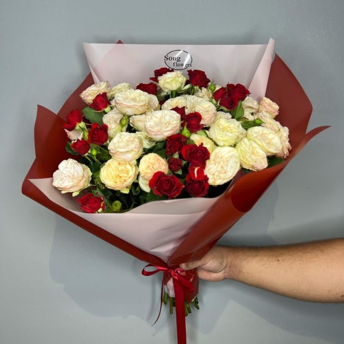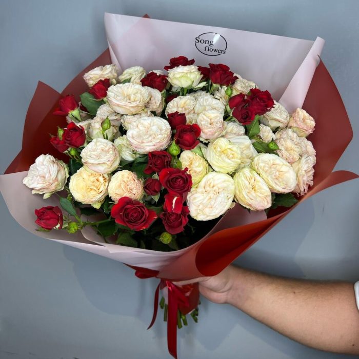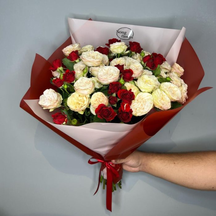 15 кустовых пионовидных роз сильва пинк. Букет 24 KimFlo