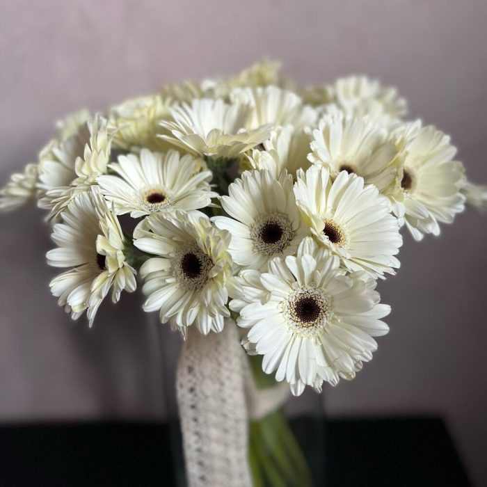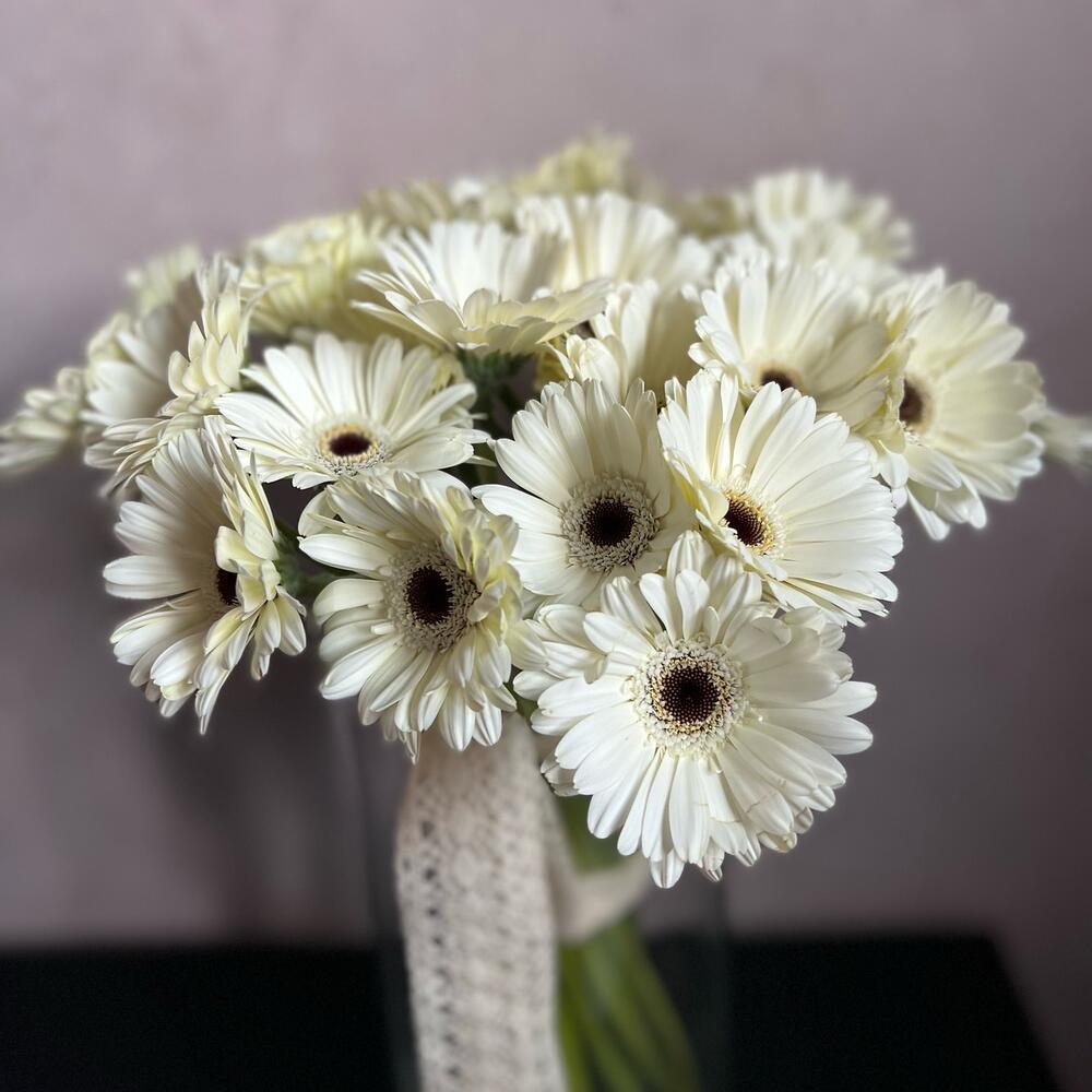 Гербера – 27 шт.Атласная лента – 1 шт.