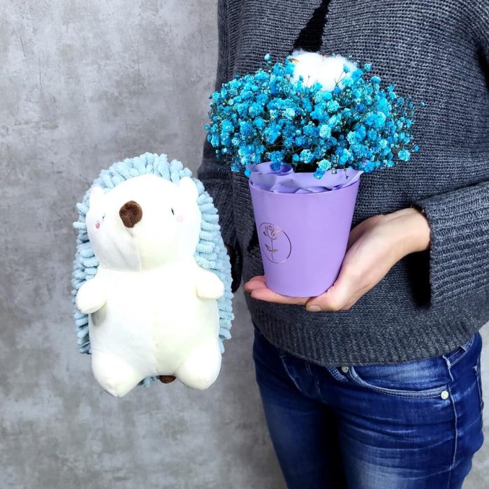 Гипсофила – 5 шт.Хлопок – 1 шт.Стакан – 1 шт.маленькая игрушка ежик – 1 шт.
