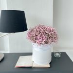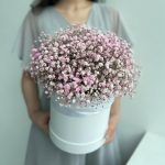“Сиреневый туман” – композиция из гипсофилы в шляпной коробке