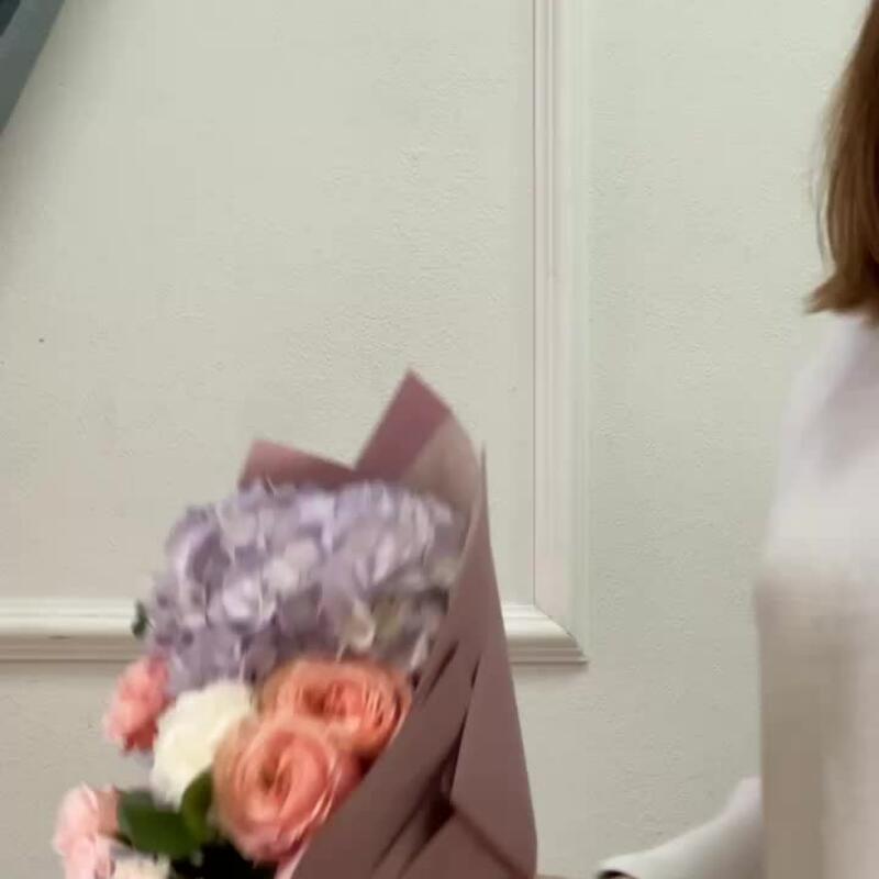 Гортензия – 1 шт.Эустома – 1 шт.Диантус – 1 шт.Клематис – 1 шт.Пленка матовая – 1 шт.Бомбастик – 1 шт.кахала – 3 шт.эвкалипт 50 – 3 шт.