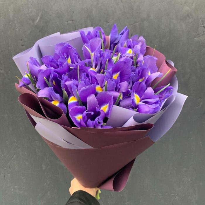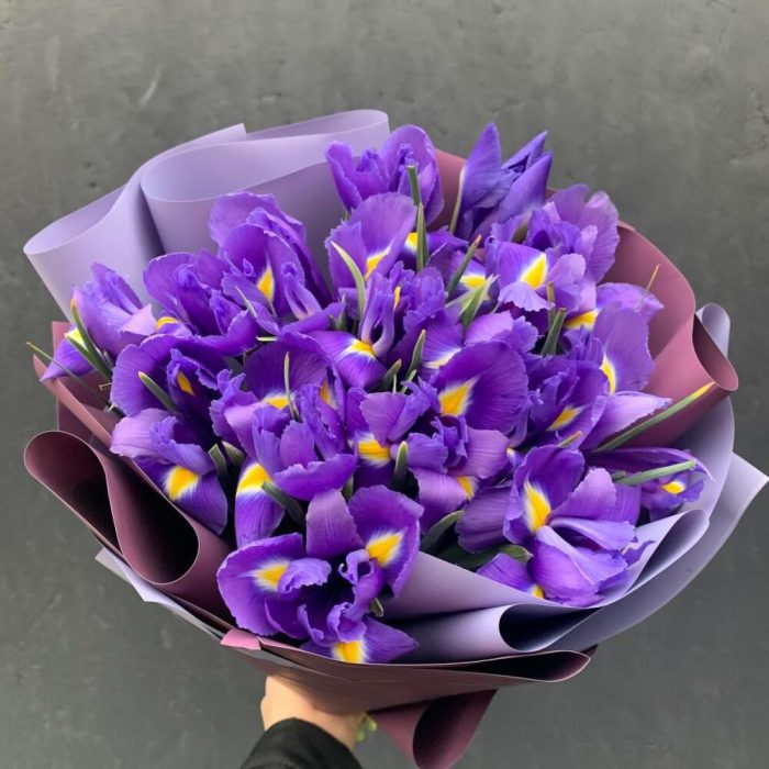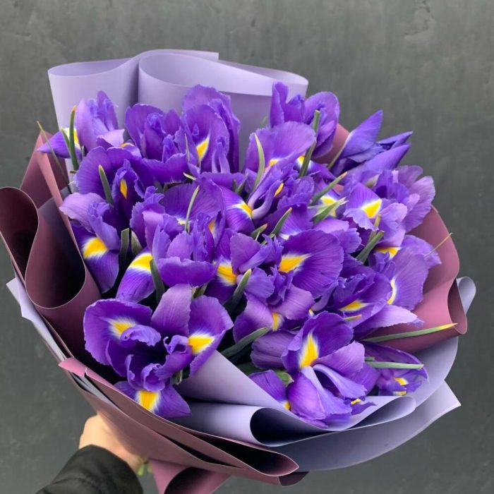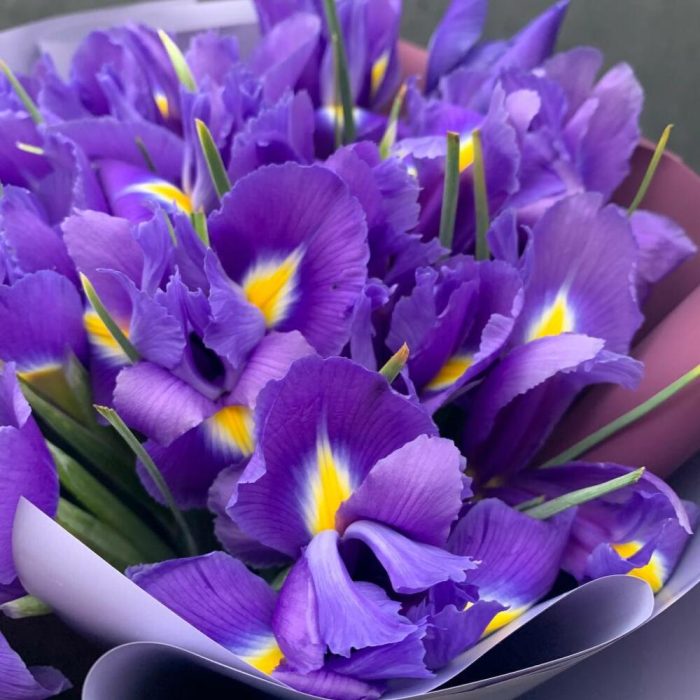 Букет из 75 ирисов в стильной упаковке "Стерлинг"
