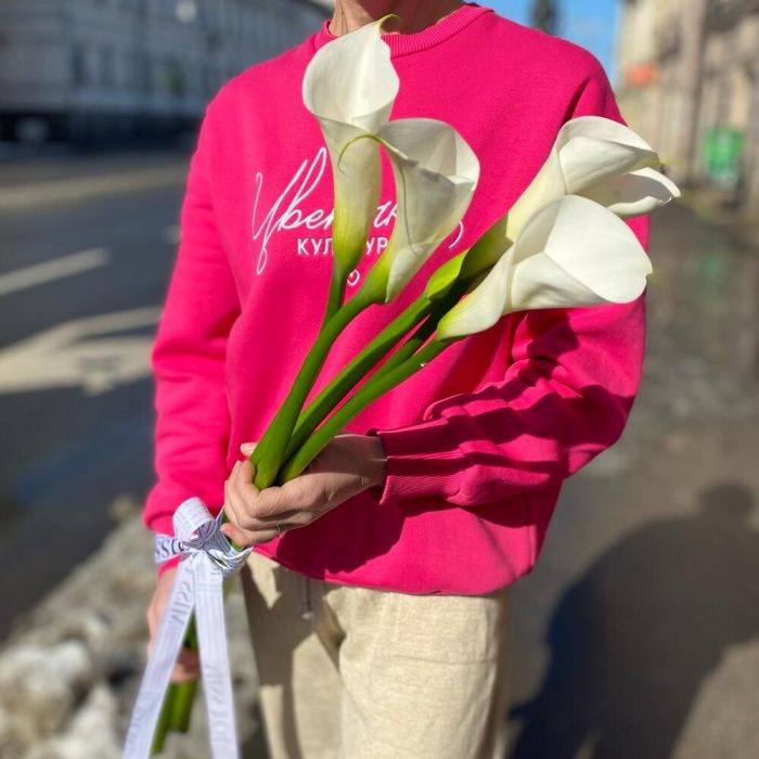 Лента атласная – 1 шт.калла белая крупная – 5 шт.