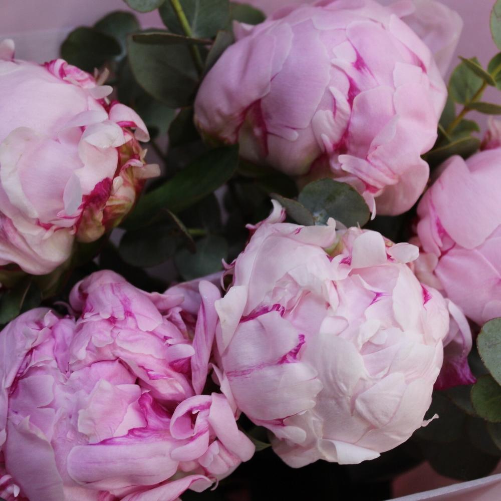 mono bouquet 27 из 5 пионов Sara Bernard с эвкалиптом