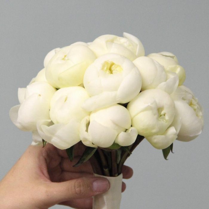 Лента атласная – 2 шт.Пион белый – 17 шт.Тейп лента – 1 шт.Булавка – 3 шт.