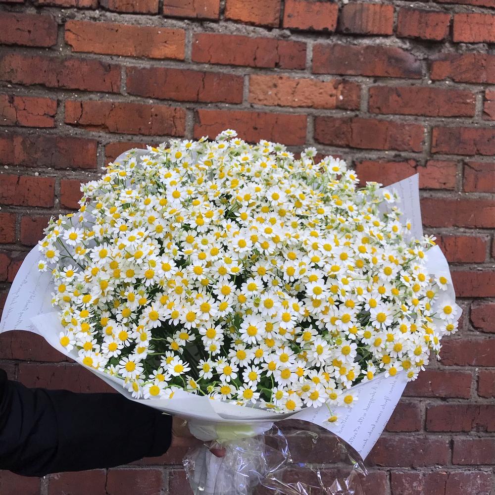 Матрикария (Ромашка Камила) – 25 шт.бумага дизайнерская – 1 шт.Лента атласная – 1 шт.