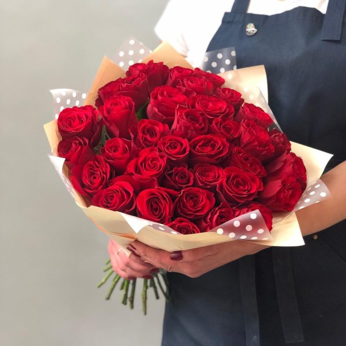 Роза красная – 35 шт.Крафт – 3 шт.