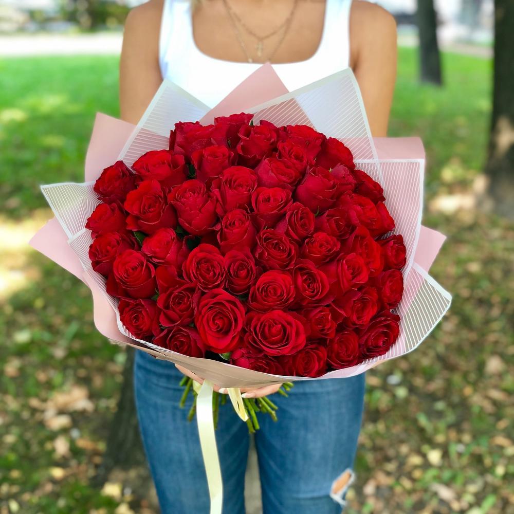 Букет РУБИНОВЫЕ УКРАШЕНИЯ из 35 красных роз. Букет 157 ALMOND ROSES
