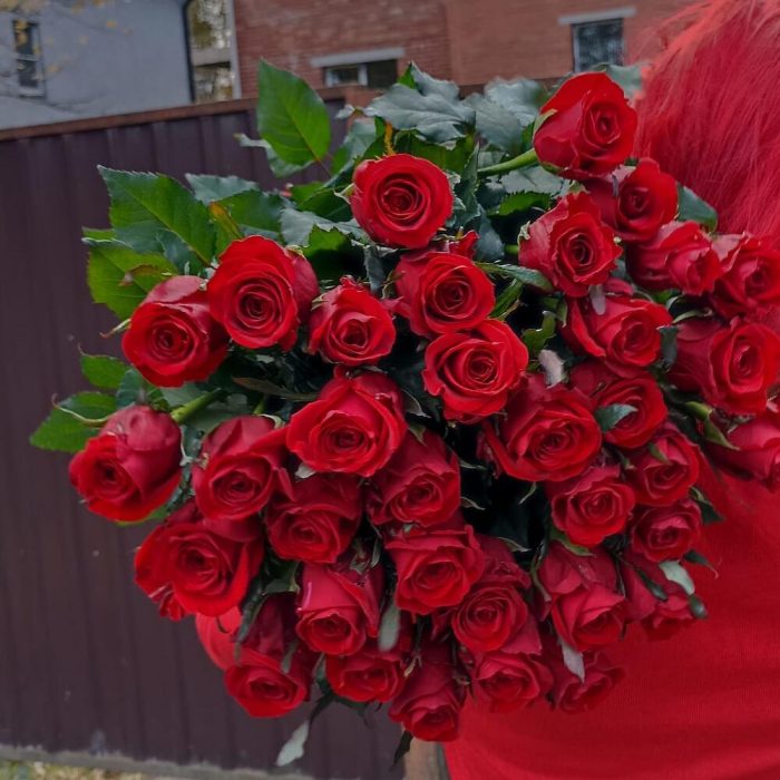 роза россия красная 70 см – 35 шт.Лента атласная – 2 шт.