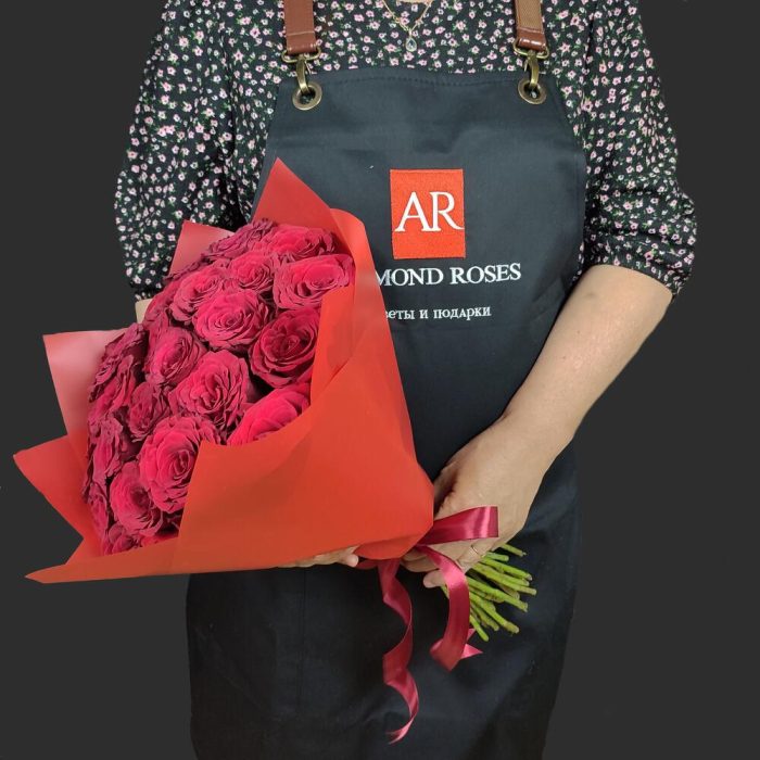Букет из 25 красных роз. Букет 127 ALMOND ROSES