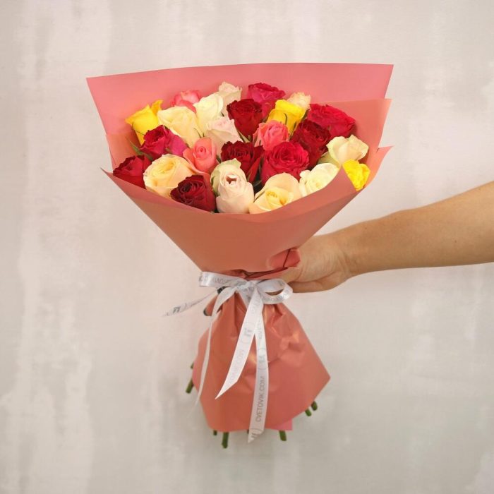 Букет из 25 роз микс 35-40 см (Кения) в упаковке