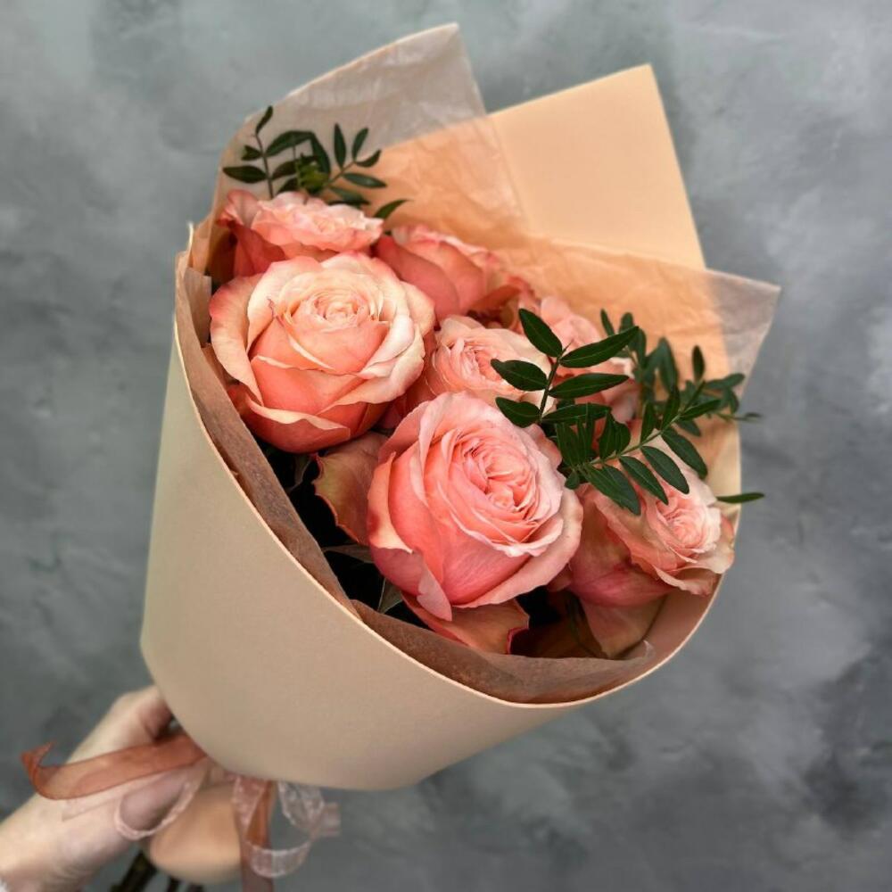 Букет из кустовых пионовидных роз «Рафаэлка»