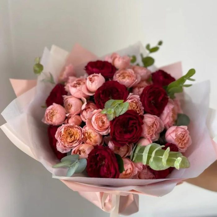 Гвоздики, Кустовые розы, Лизиантусы, Пионовидные розы, Розы