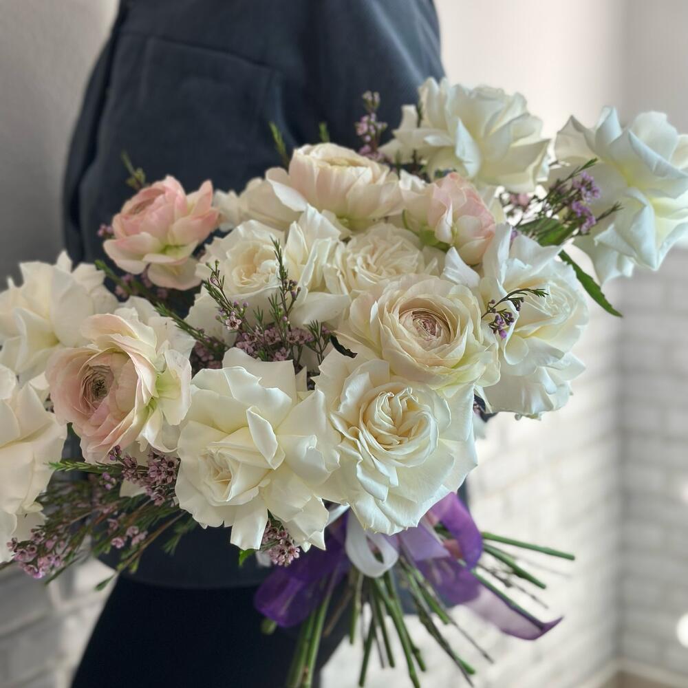 Букет с белыми розами и ранункулюсом»Весенние грезы»