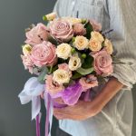 Цветочная композиция с нежными розами”Французский поцелуй”