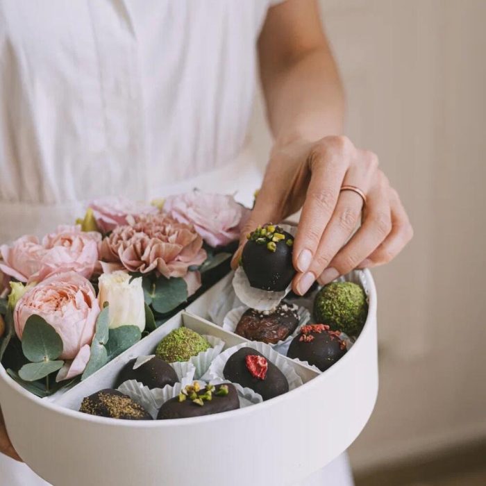 “Сладкое сердце ” – цветочная композиция с сладостями в коробке “Сердце”