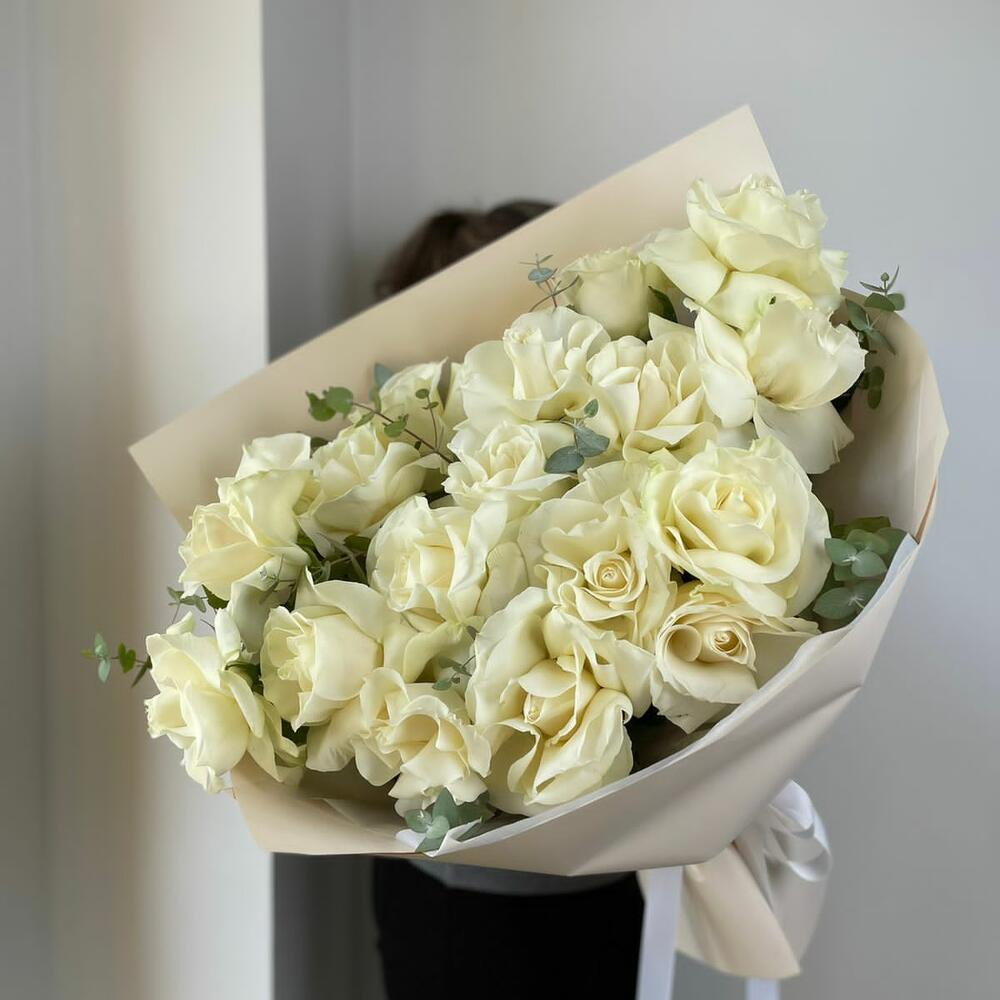 Букет из 25 белых роз 35-40 см (Кения) под ленту