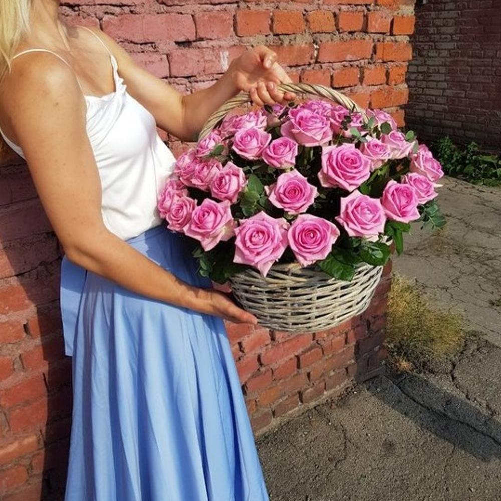 Метки: 51 роза, от 5000 руб, цветы в корзине