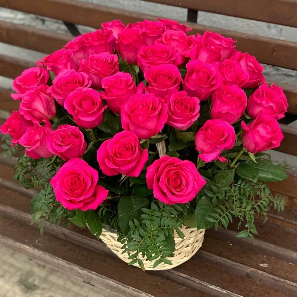 Оазис флористический – 3 шт.Фисташка – 6 шт.Корзина плетеная – 1 шт.Роза Эквадор – 41 шт.