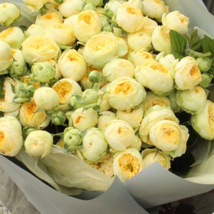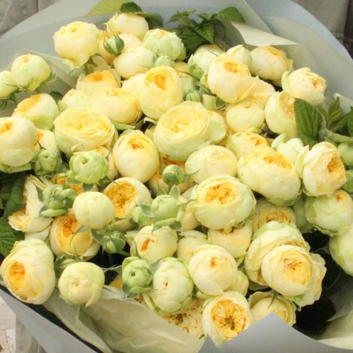 Лимонный щербет - Букет с пионами и пионовидными розами