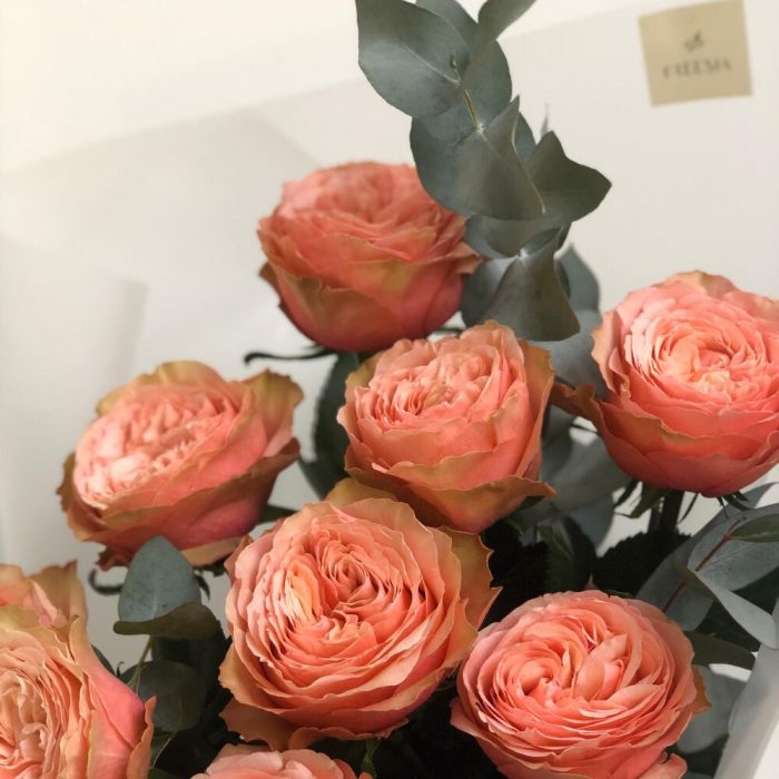 kahala роза пионовидная – 9 шт.Эвкалипт – 5 шт.Упаковка дизайнерская – 1 шт.