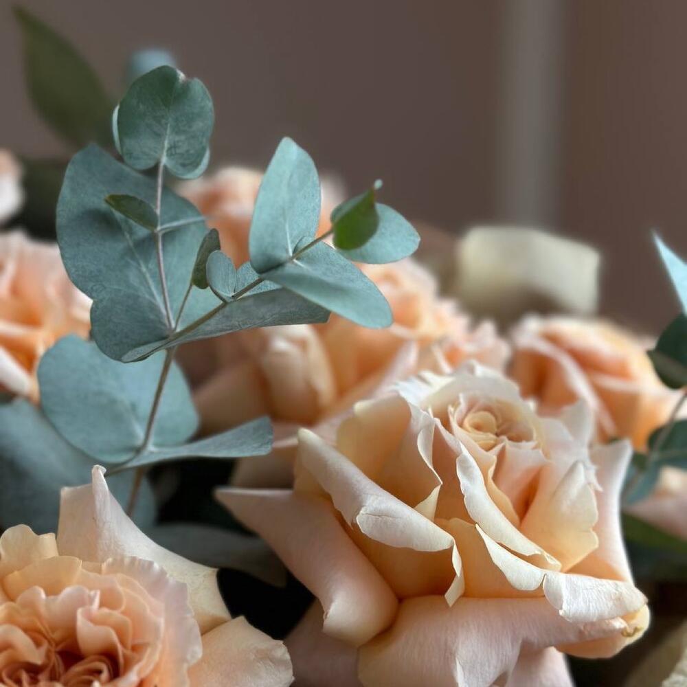 “Эвкалиптическая роскошь” гортензия и пионовидная кустовая роза