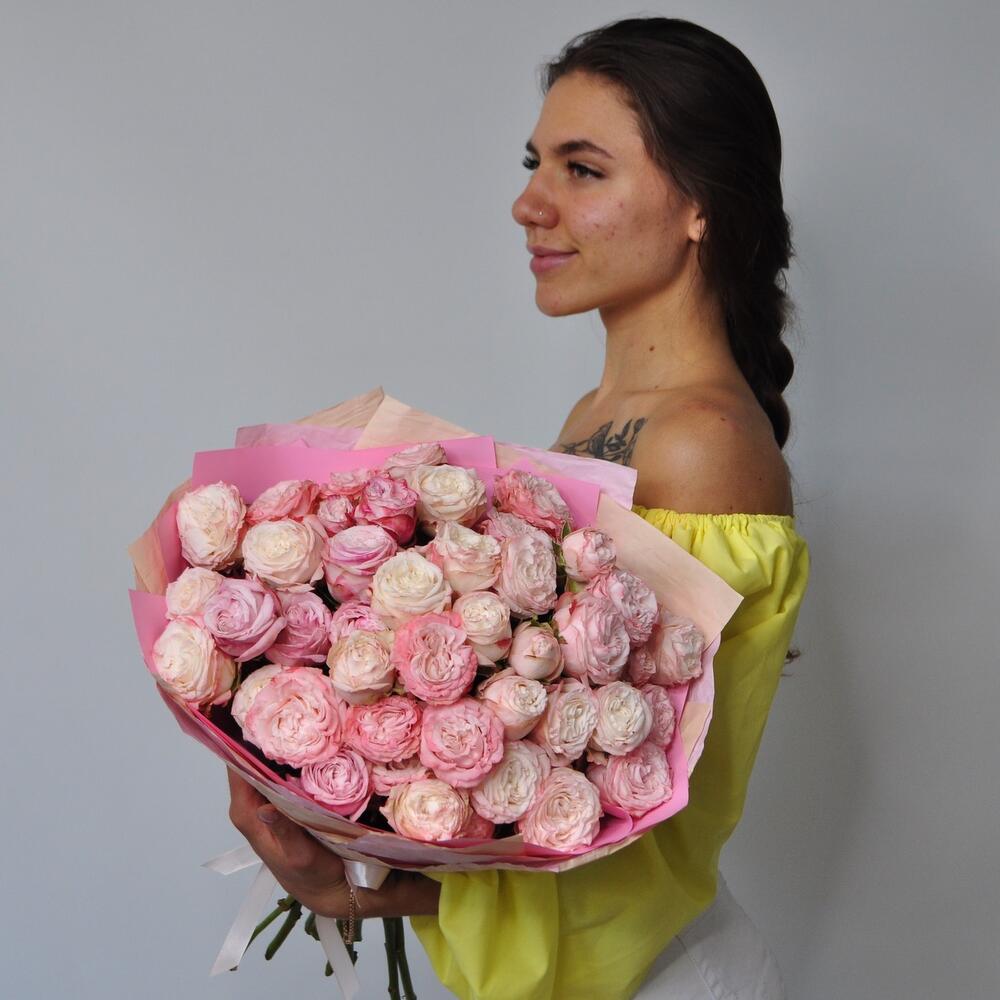Очень необычные, кружевные розы сорта Бомбастик!Настоящее пионовидное чудо среди цветов!По желанию упаковку можно заменитьТакой букет можно заказать на: день влюбленных, 8 марта, день матери, крестины, рождение ребенка или внука, именины, годовщину бракосочетания.