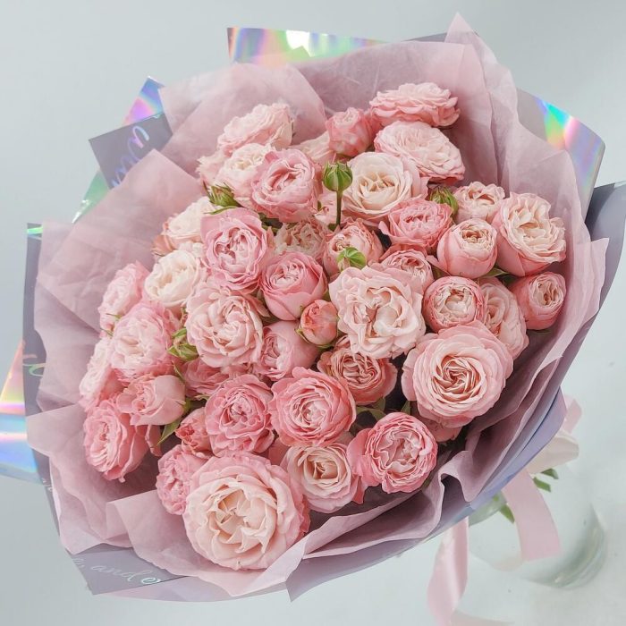 Упаковка дизайнерская – 1 шт.Роза кустовая пионовидная бомбастик – 15 шт.