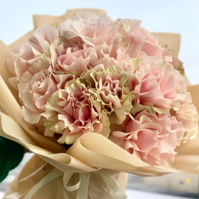 9 пионовидных роз pink x-pression с эвкалиптом