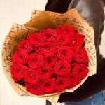розы 21 штт эквадор – 21 шт.Крафт – 2 шт.Лента атласная – 1 шт.