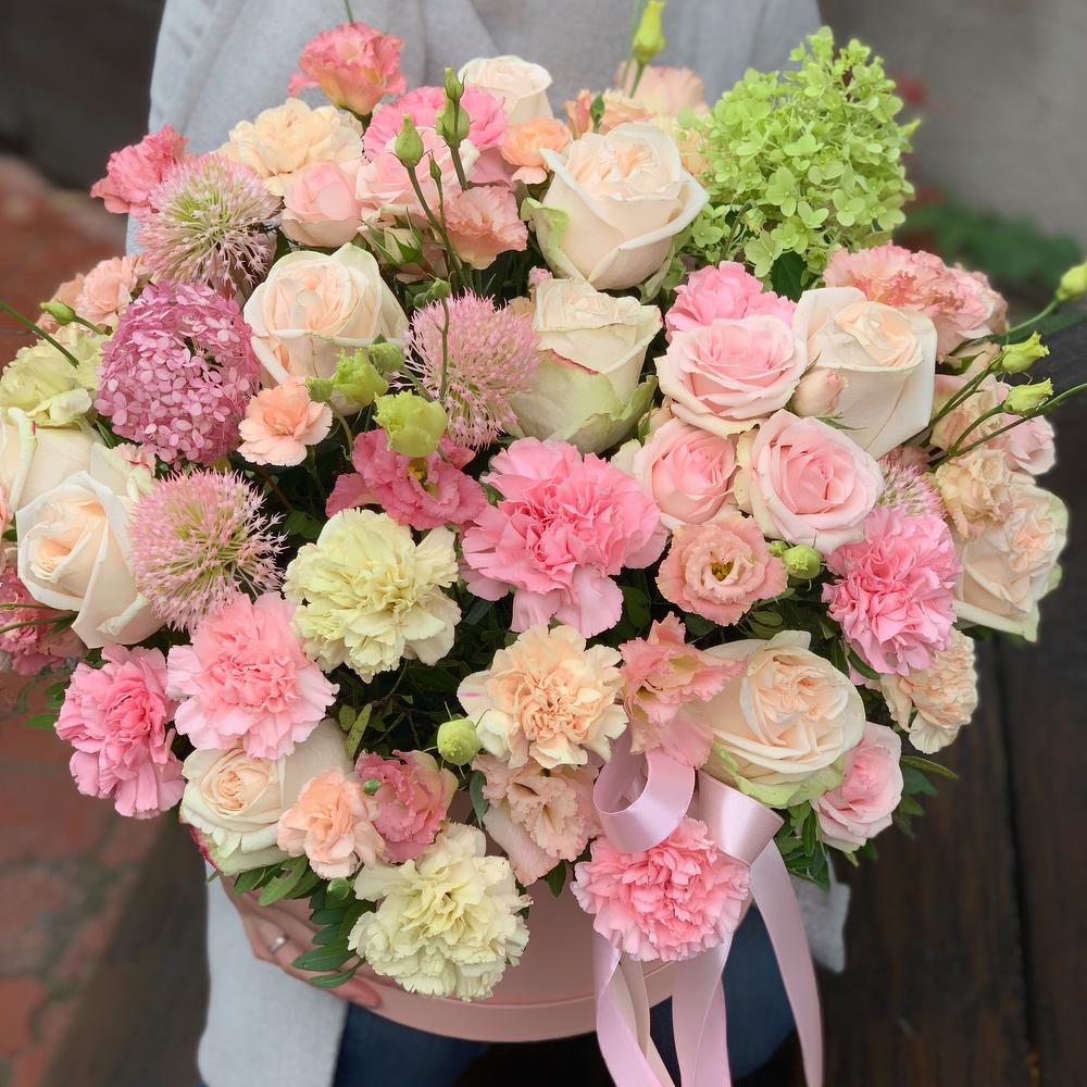 Категорий: Гвоздики, Кустовые розы, Лизиантусы, Пионовидные розы, Розы