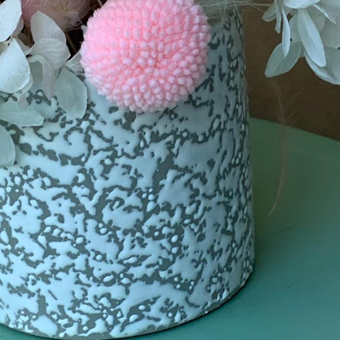 сухоцветы микс – 20 шт.керамическое кашпо ручной работы – 1 шт.Краспедия – 2 шт.Лаванда (сухоцвет) – 10 шт.гортензия стабилизированная – 1 шт.