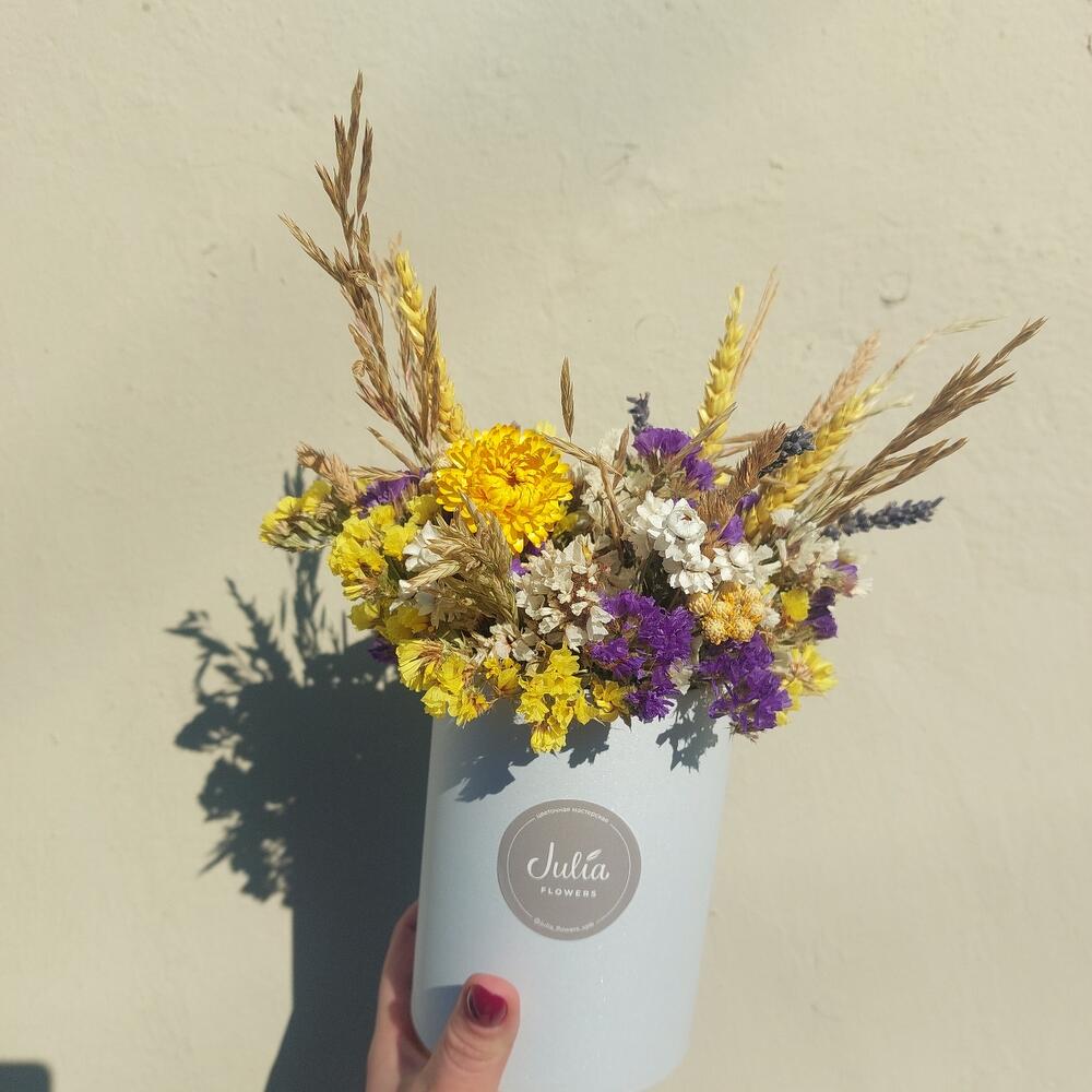 Композиция из сухоцветов в шляпной коробке
