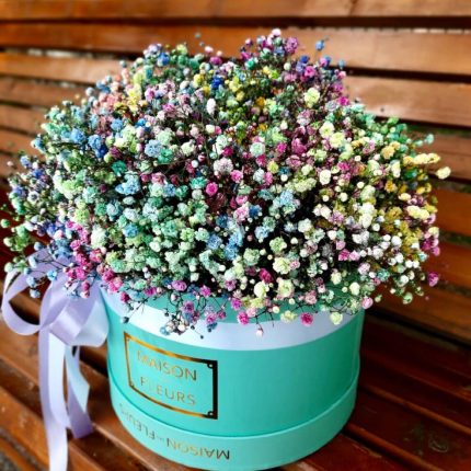 Хризантемы и Пионовидные кустовые розы в коробке + открытка ручной работы в подарок